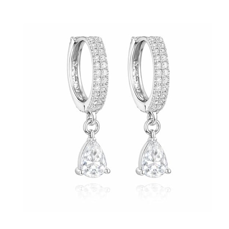 18k Rose Gold and Silver Plated Clip On Hoop Earrings Drop Design Zircon Studded Copper Bali Lightweight Stylish Fancy Earrings For Women Girls