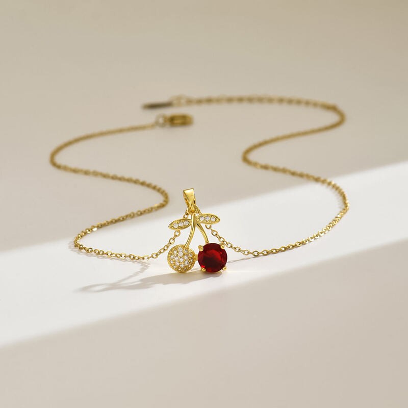 1 X Anti-tarnish The Ruby Cherry Charm Necklace