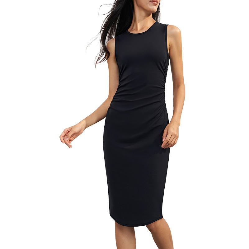 Bamboo Ribbed Bodycon Midi Dress for Women Sleeveless Crewneck Side Slit Summer Wear.