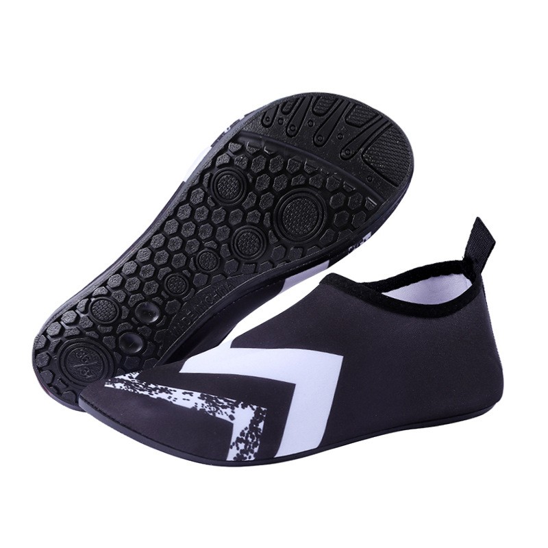 A: Yes. The soles feature anti-slip tread patterns, giving you secure grip on wet surfaces, which helps prevent slipping during outdoor or water activities.