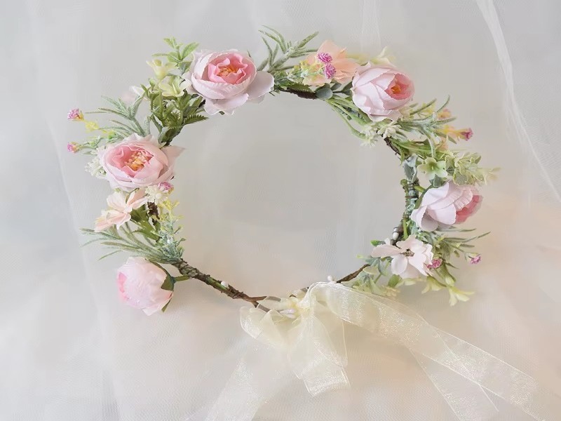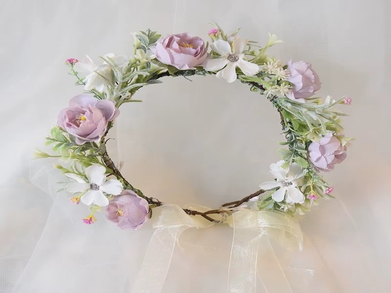 Boho Flower Headband Floral Garland Crown Hair Wreath Ribbon Headpiece for Wedding Festival Party Women Hair Accessories