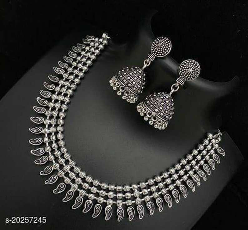 Brass Oxidized Tribal Choker Necklace Set with Jhumka Earrings Antique Boho Religious Ethnic Festival Jewelry for Women