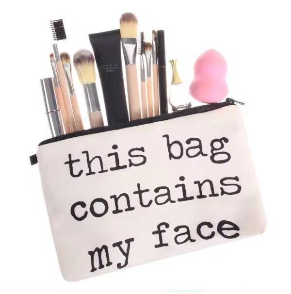 Canvas Utility Pouch with Flawless Mascara Print Multipurpose Zipper Pouch for Cosmetics Makeup Stationery Travel Accessories Organizer