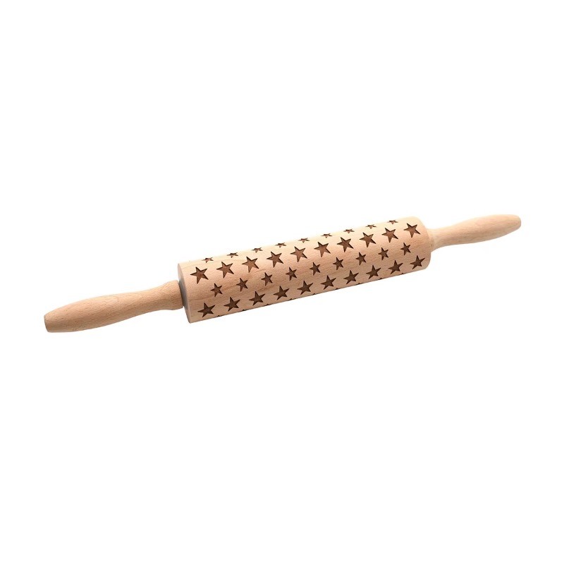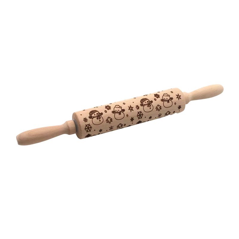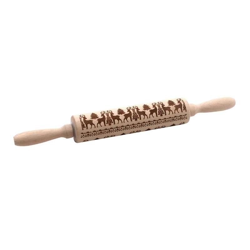 Christmas Embossed Wooden Rolling Pin Pastry Tool for Cookies Dumpling Dough Baking Carved Pattern Wood Roller Non Stick Kitchen Baking Utensil Durable Easy Grip Handle