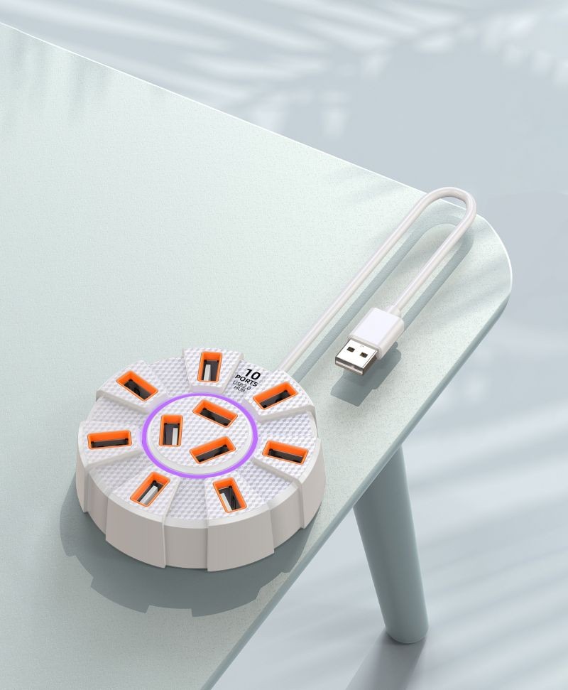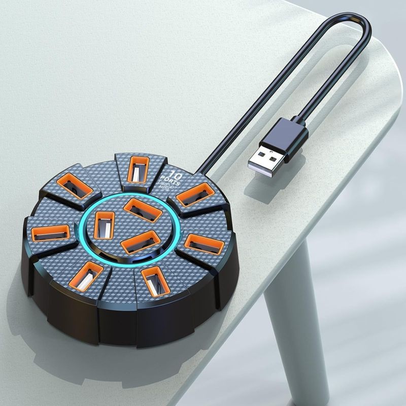 Colorful LED USB Hub with High Speed Seven and Ten Port Expansion Dock Supports External Power for Data Transfer and Device Charging