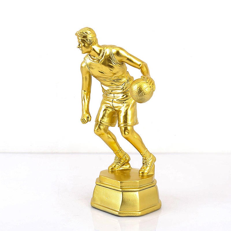 The trophy is made from durable resin with a metallic coating. It should be cleaned with a soft dry cloth and stored in a safe place to maintain its shine.