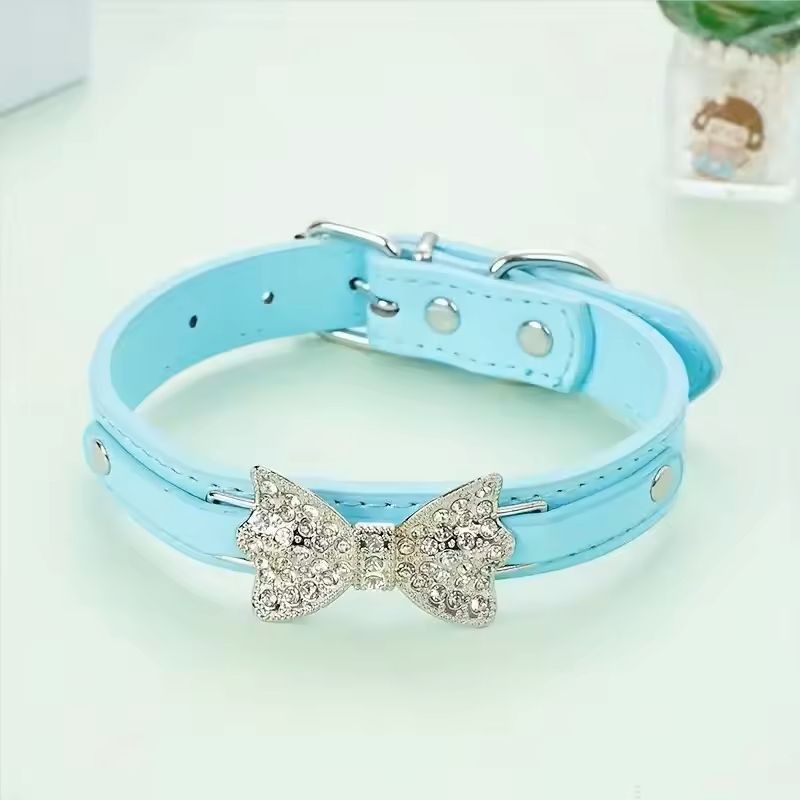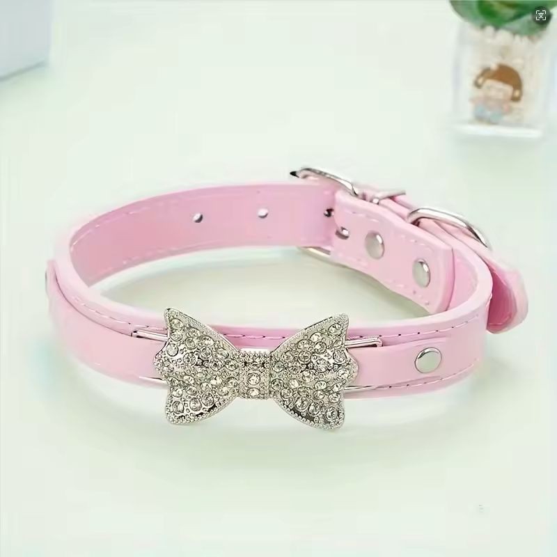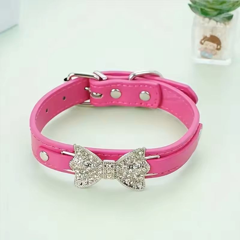 Cute Crystal Diamond Bone Pet Collar with Traction Rope Stylish PU Leather Cat & Dog Collar Adjustable Durable Fashionable Pet Belt for Cats and Small Dogs Pack of 1