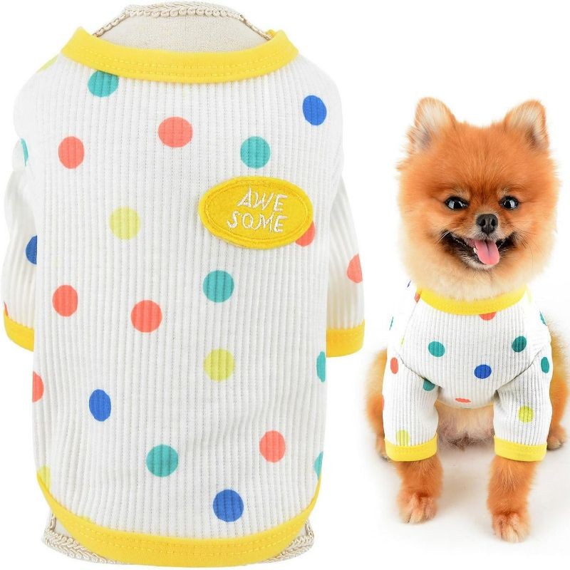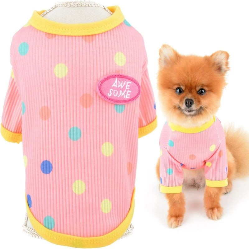 Cute Rainbow Polka Dot Knit Sweatshirt for Small Dog Soft Stretch Puppy Pullover Jumper Pet T-Shirt Winter Fall Cat Costume Chihuahua Yorkie Cozy Warm Pet Clothing