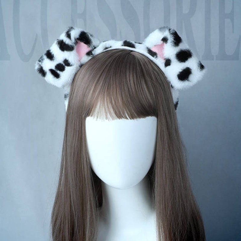 Dalmatian Dog Ear Headband Plush Bear Ear Hairband Soft Costume Party Accessory for Kids Women Men Fancy Dress Carnival Cosplay Props
