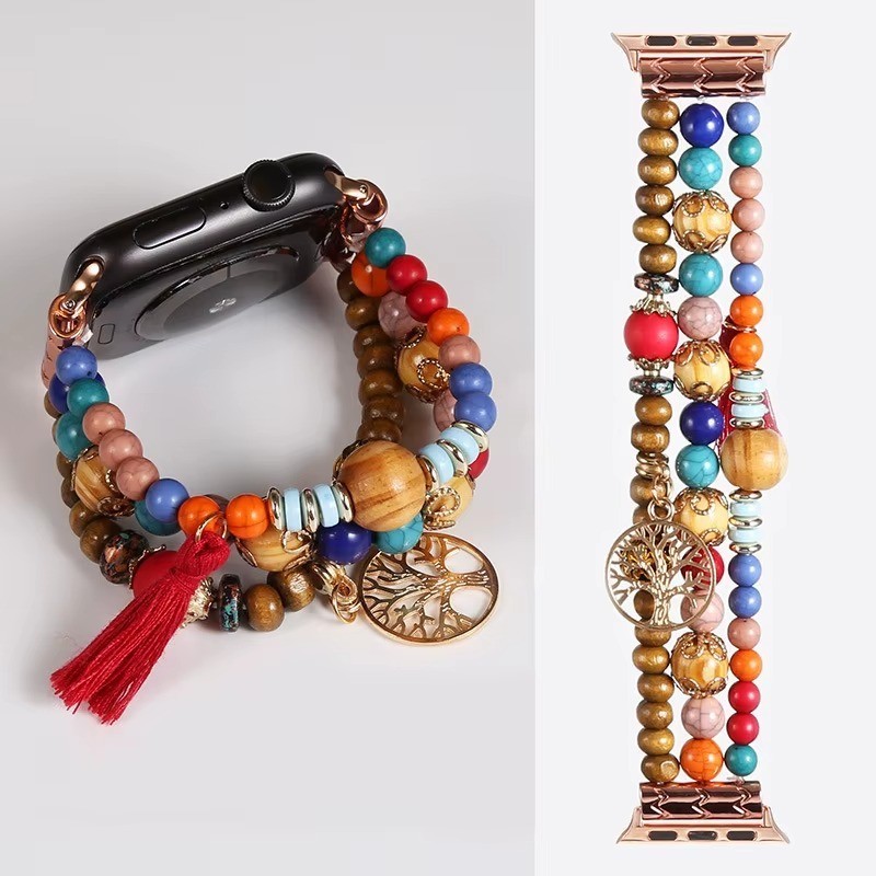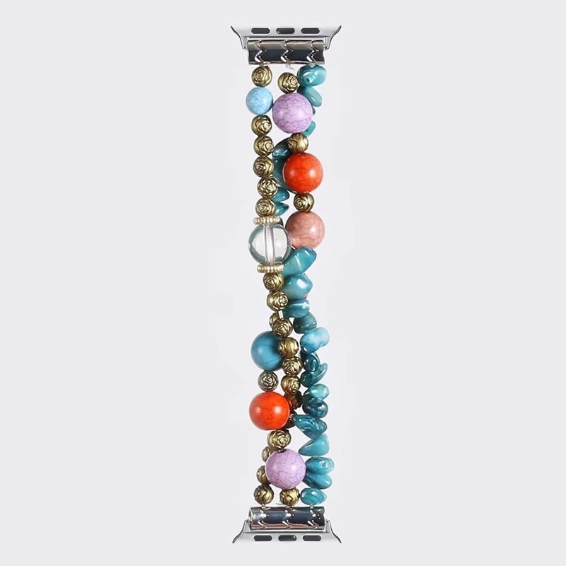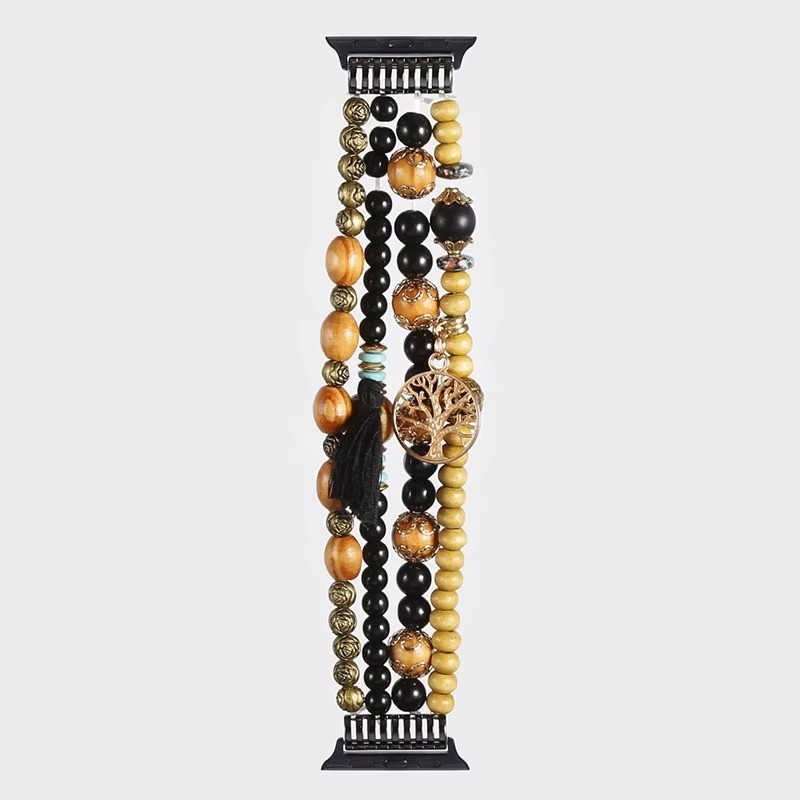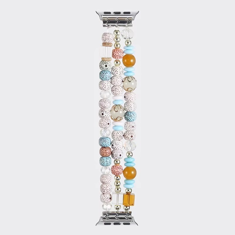 Elegant Beaded Jewelry Smart Watch Band Compatible with Apple Watch Series Stylish Elastic Bracelet Strap Adjustable Pearl Beads Wristband Fashion Accessory for Women