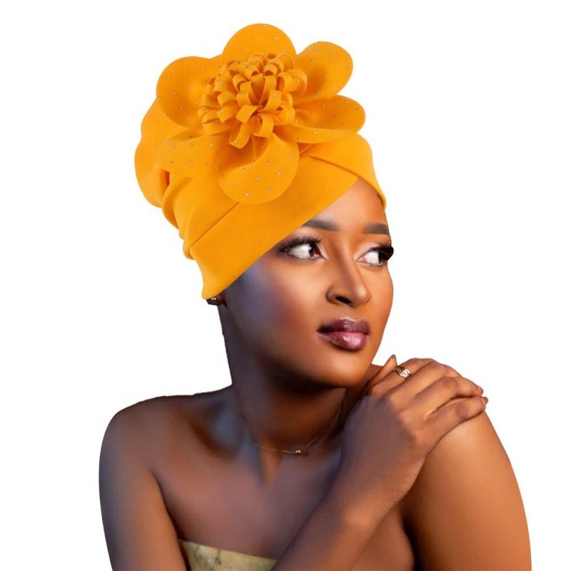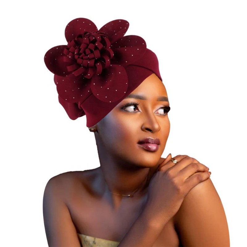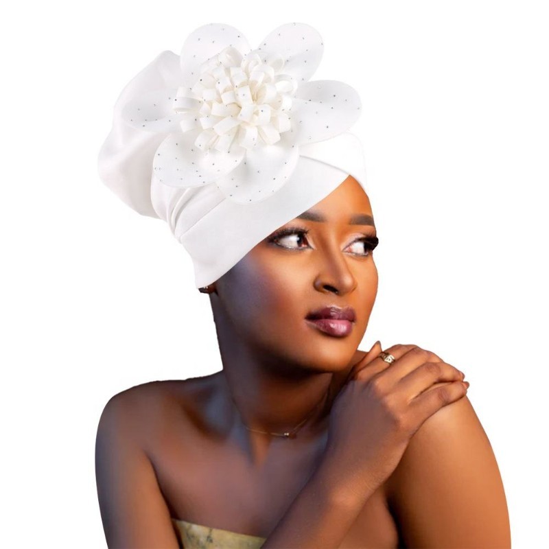 Elegant Women Turban Hat Polyester Cotton Blend Floppy Headwear With Sequin Flower Formal Wedding Party Headpiece