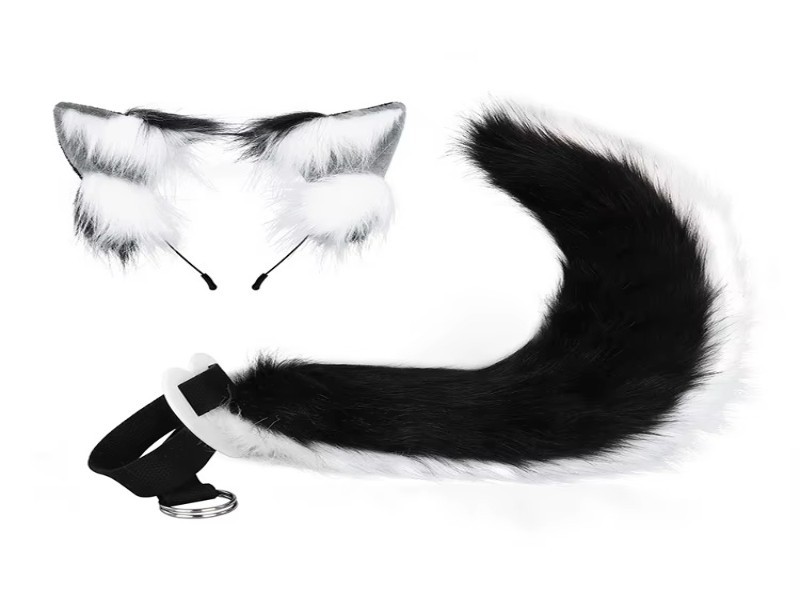 It includes a cat ear headband and a tail.