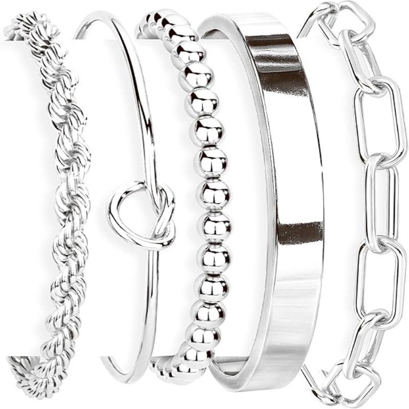 Gold Plated Bracelet Set Waterproof Non Tarnish Stackable Chunky Cuff Cuban Rope Paperclip Beaded Bangle Jewelry for Women