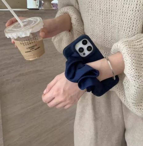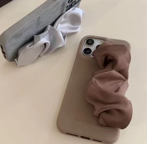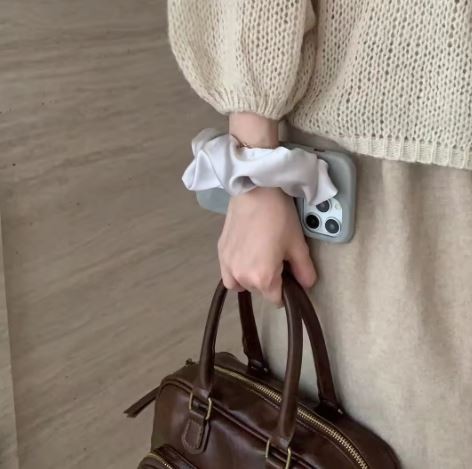 Grey Scarf Wristband Leather Hard Case for Apple iPhone 16 14 Pro Max Fashion Single Handle Protective Phone Case Skin Lined Cover