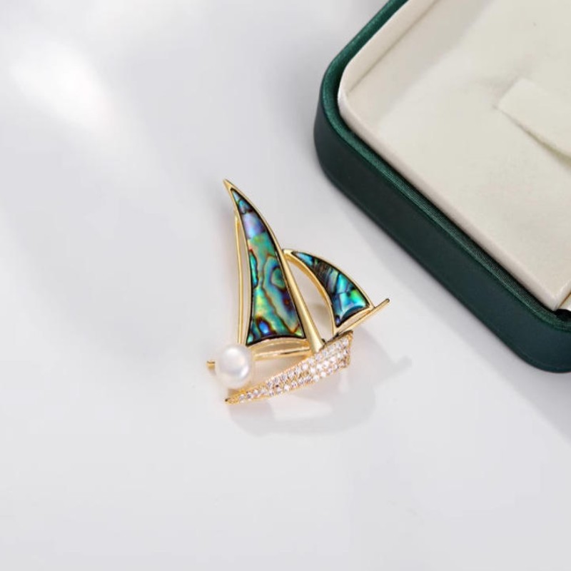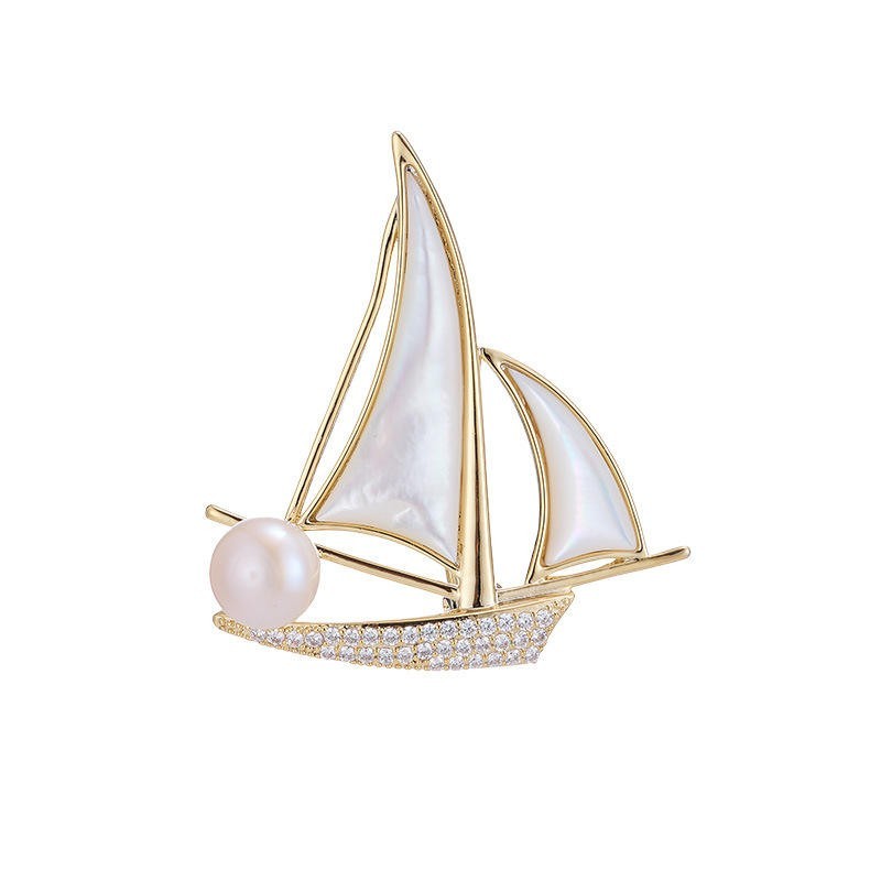 High End Women Boat Sail Brooch with Freshwater Pearl Elegant Jewelry Pin Luxury Fashion Accessory for Party Wedding Outfit
