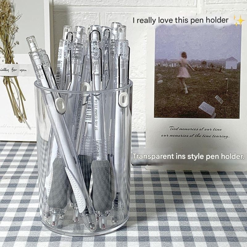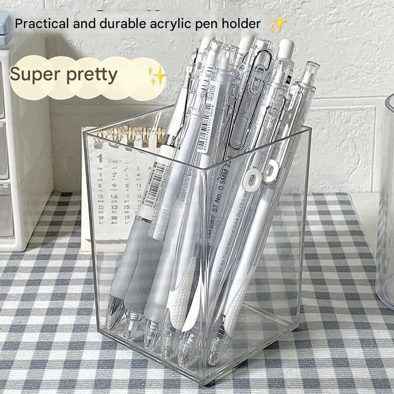 INS Transparent Acrylic Pen Holder for Student Stationery Office Desktop and Makeup Brush Storage Organizer