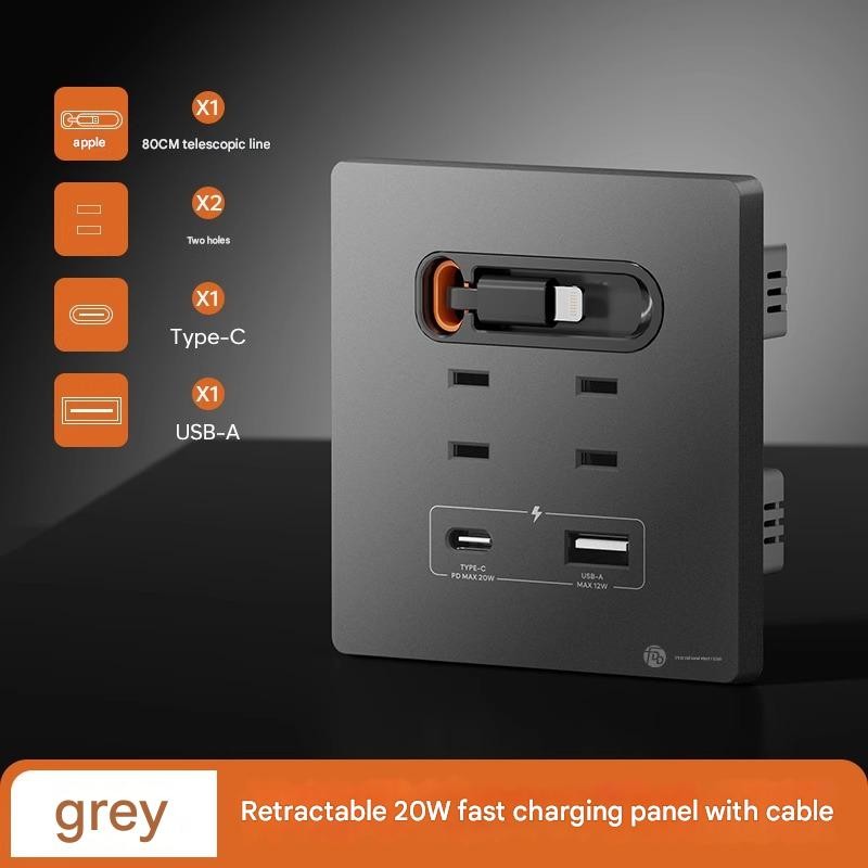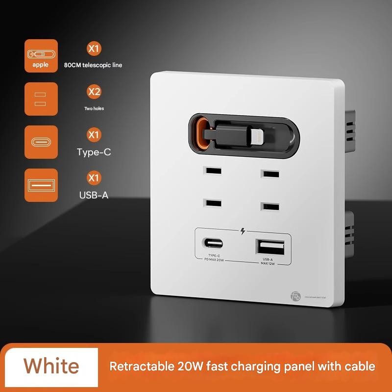 Electric 20W Fast Charging USB Socket Switch Panel 86 Type with Retractable Cord