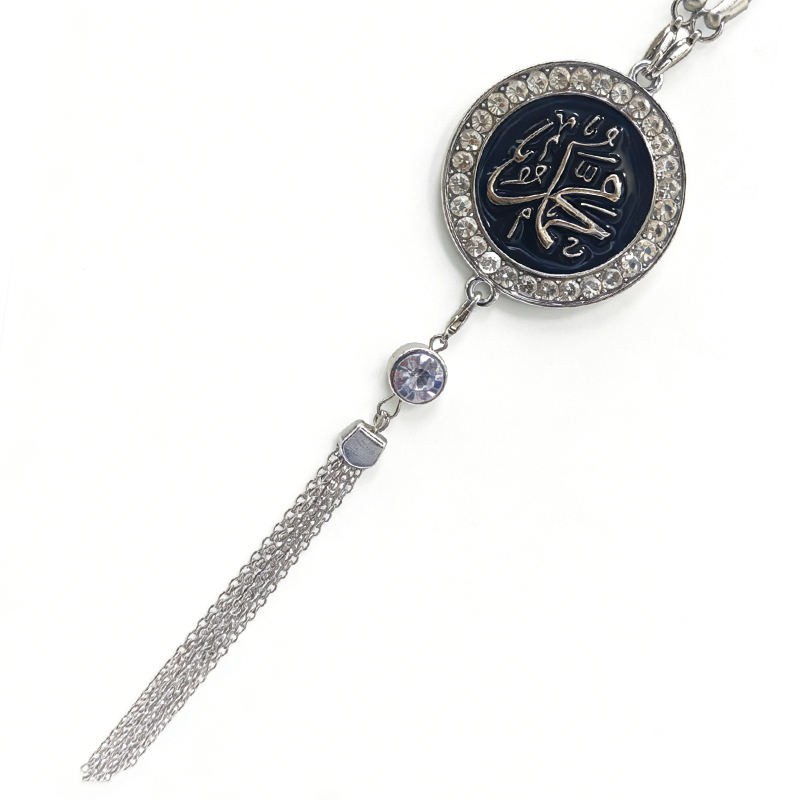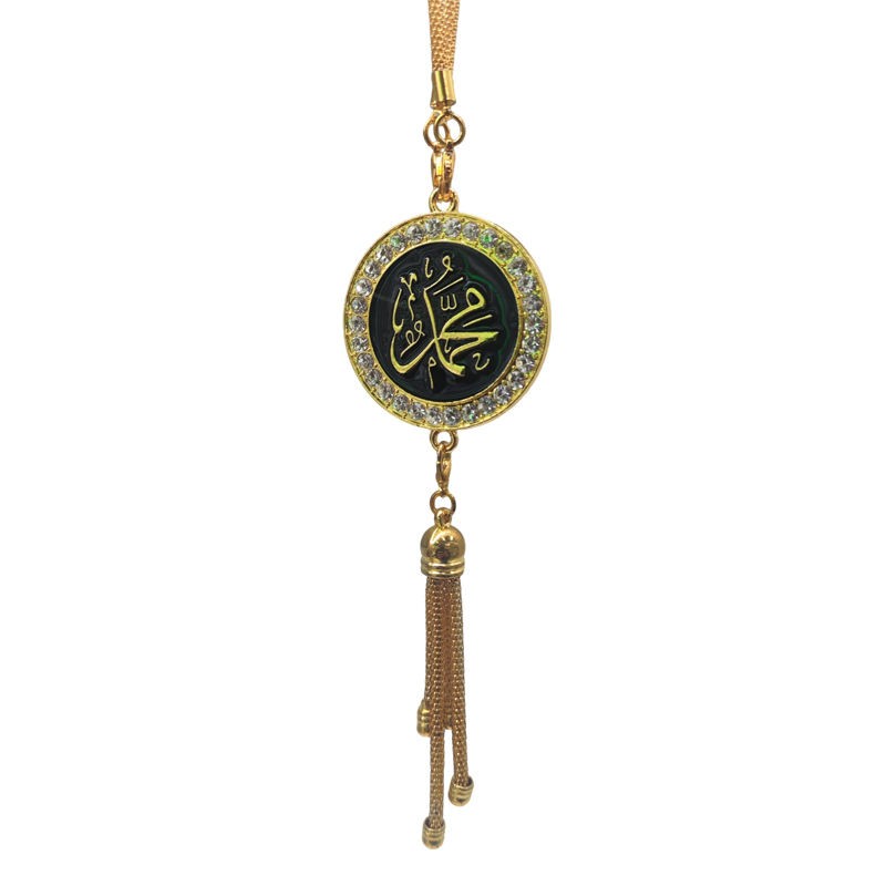 Islamic Arabic Calligraphy Pendant Car Hanging Ornament with Crystal Frame and Tassel Decorative Islamic Gift