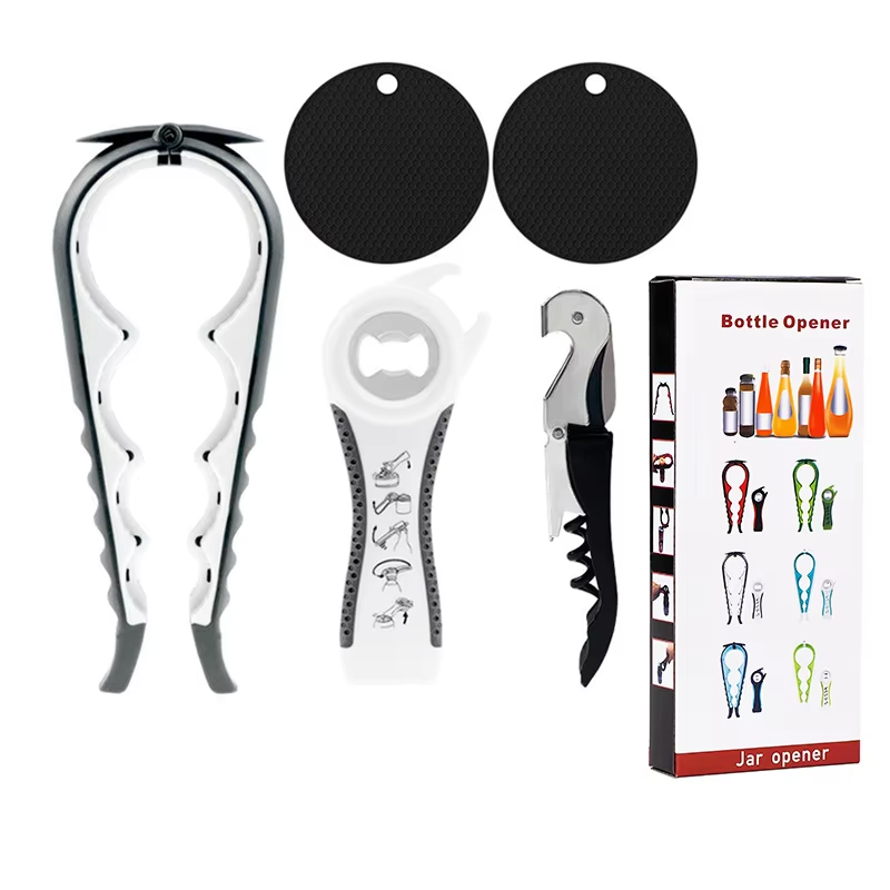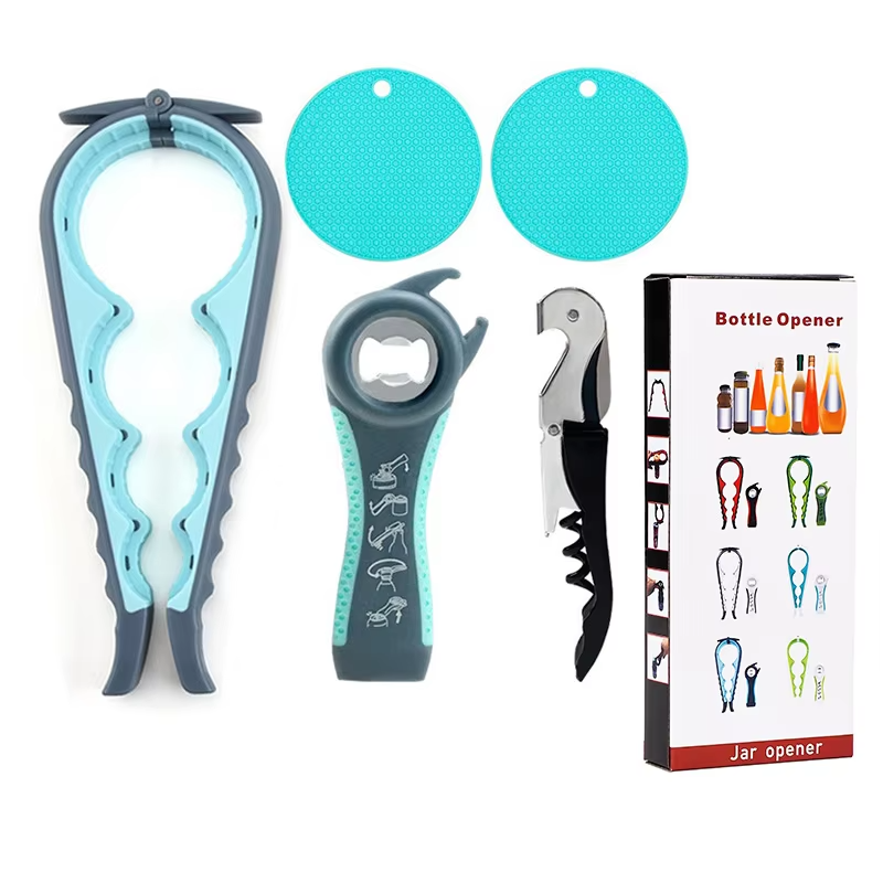 Jar Opener for Weak Hands, Seniors with Arthritis, 5 in 1 Multi Function Bottle Opener Lid Opener For Arthritic Hands with Non Slip Rubber Jar opener Gripper Pad