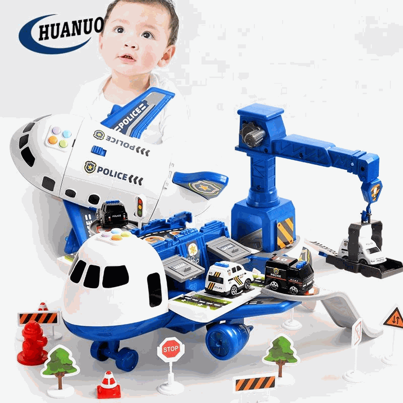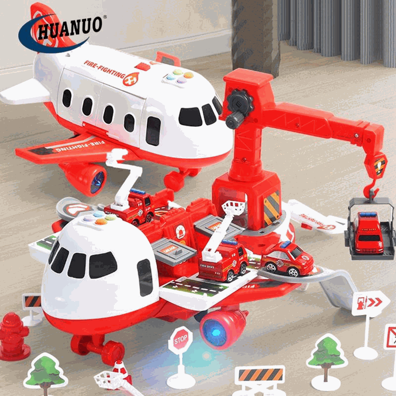 Kids Friction Alloy Fire Truck Car Storage Deformation Electric Toy Plane