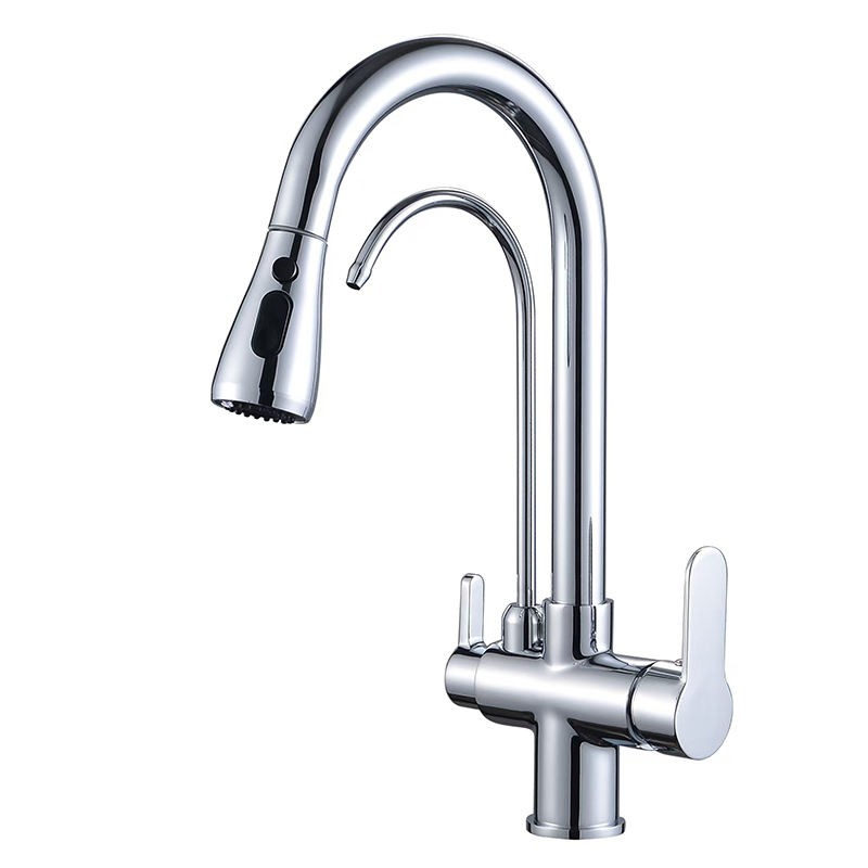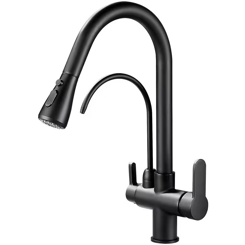 Kitchen Pull Out Faucet Hot Cold Water Purifier Sink Tap Three In One Design