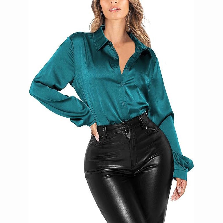 Ladies Satin Silk Work Shirt Elegant Long Sleeve Office Blouse Summer Formal Top.