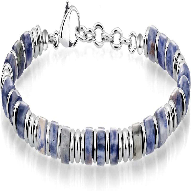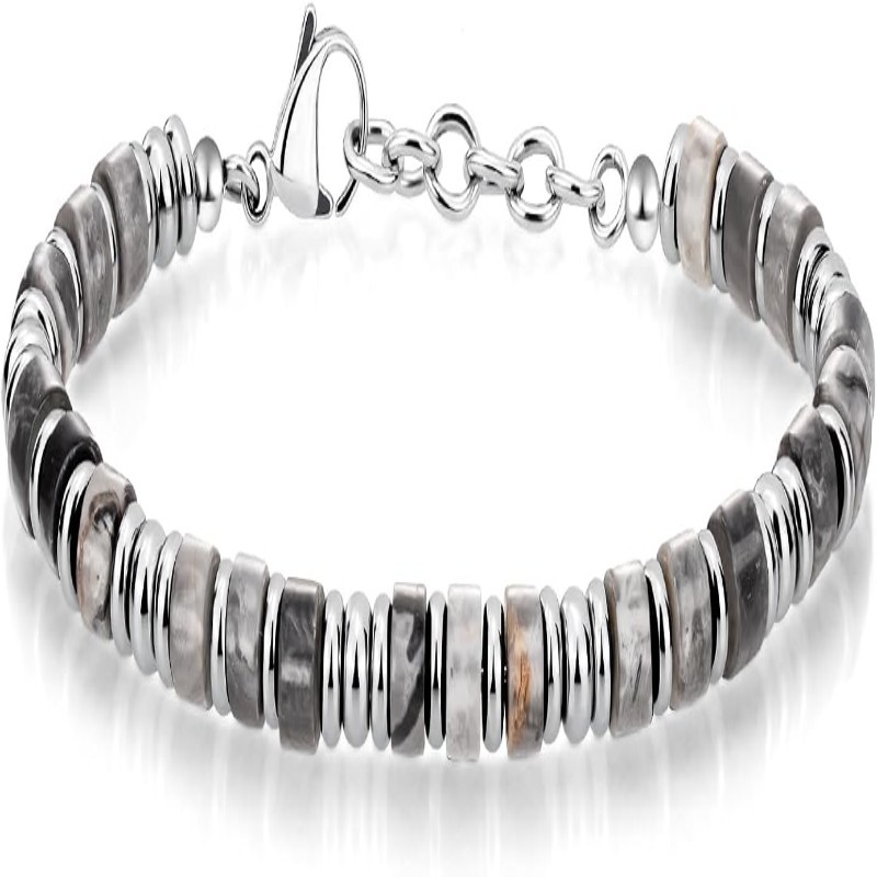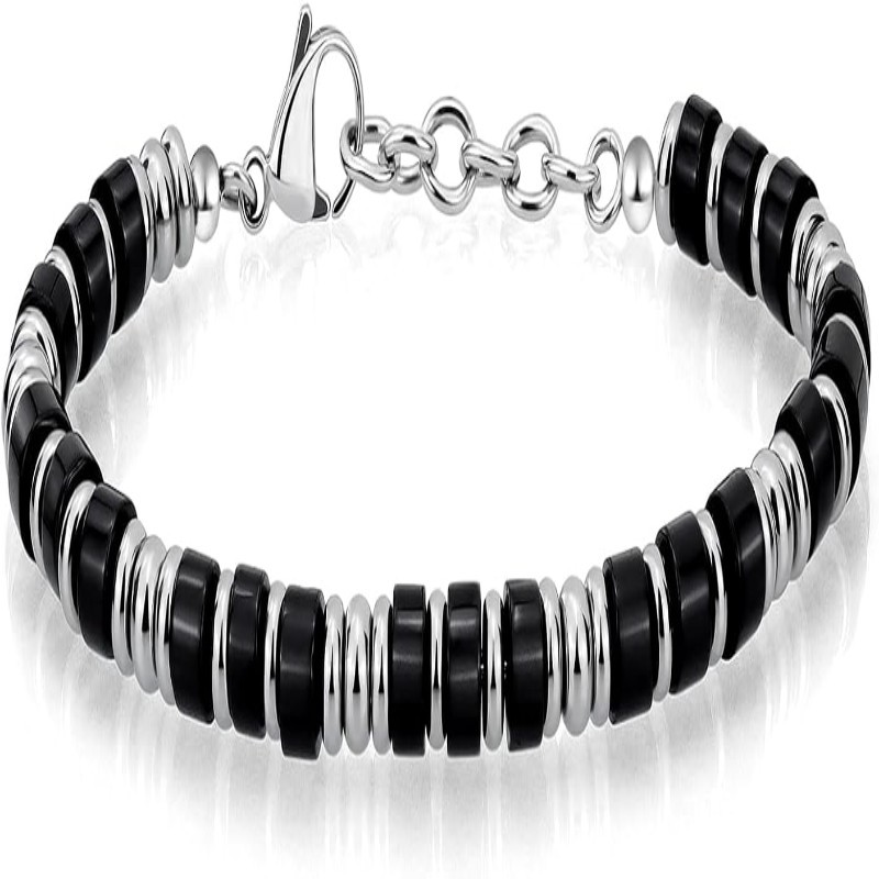 Mens Boho Stainless Steel Beaded Bracelet Stylish Handmade Elastic Wrist Jewelry Gift for Husband Father Friend Minimalist Fashion Accessory