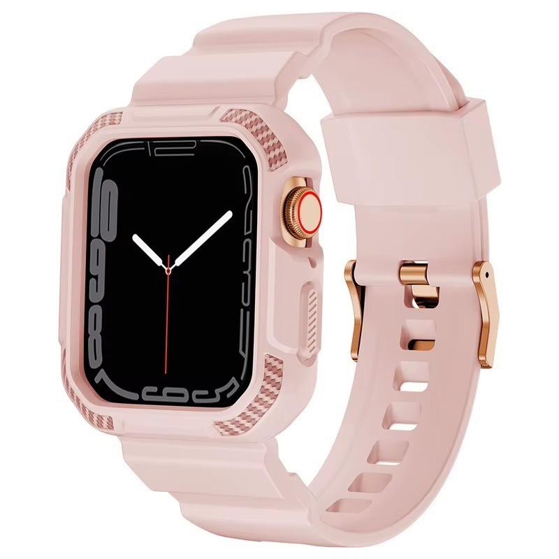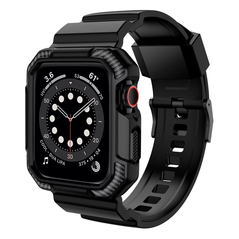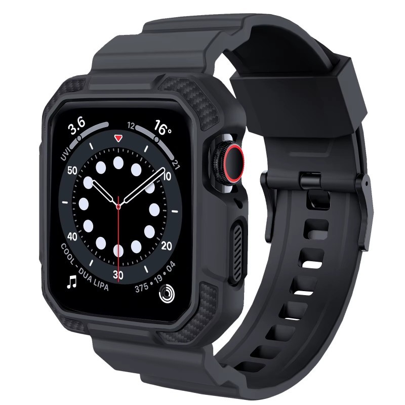Military Protective Rugged TPU Watch Band Strap Compatible With Apple Watch Series Ultra SE Soft Shockproof Durable Sport Wristband With Case Cover Replacement