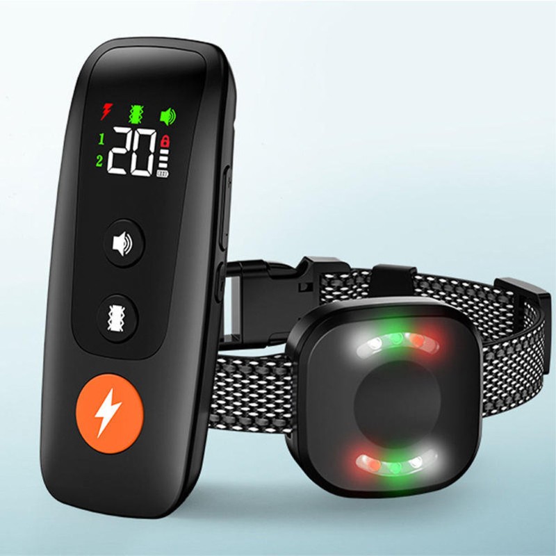 The collar connects wirelessly to a remote, allowing you to send signals such as beep, vibration, or mild static stimulation to train and correct your dog’s behavior.