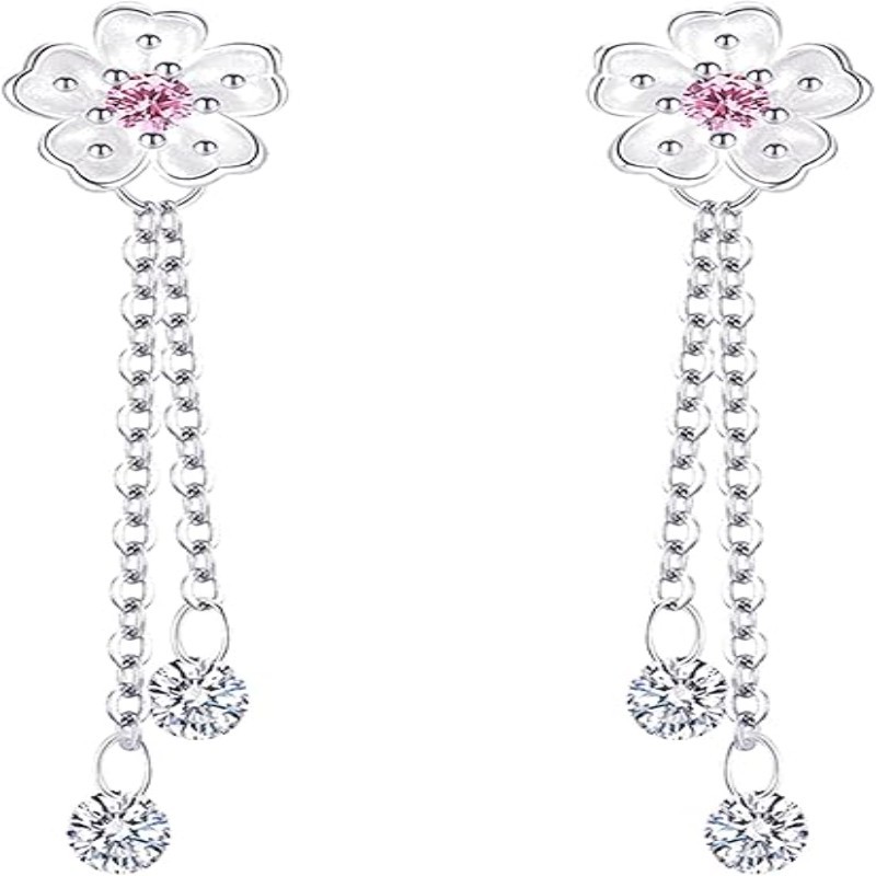 Pink Flower Dangle Earrings Asymmetrical Cute Floral Drop Jewelry Lightweight Summer Beach Holiday Statement Accessories for Women