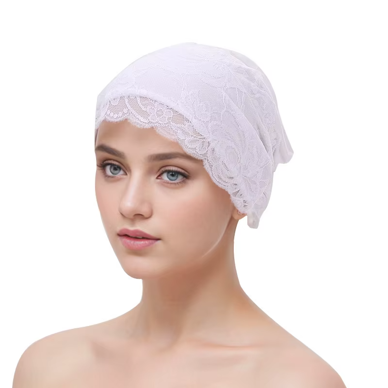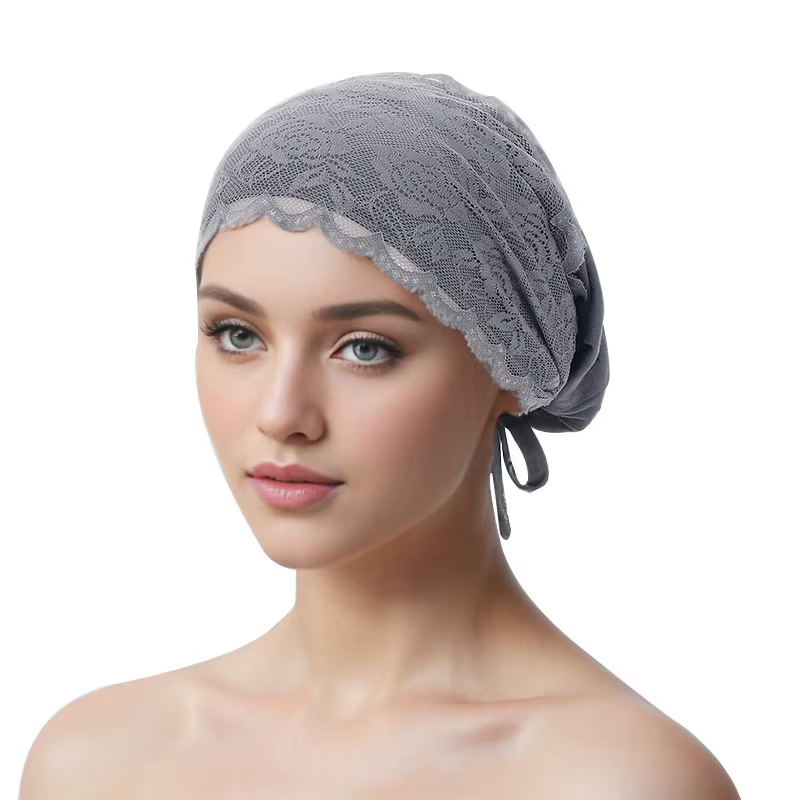 Polyester Cotton Blend Floppy Hat Wedding Casual Turban with Lace Flower Headpiece Stylish Women's Fashion Headwear