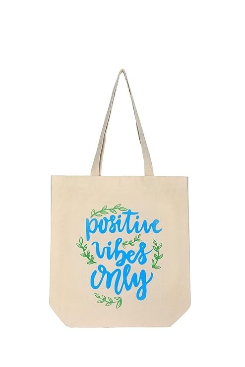 Positive Vibes Tote Bag Printed Canvas Carry Bag for Shopping, Travel, College and Everyday Use