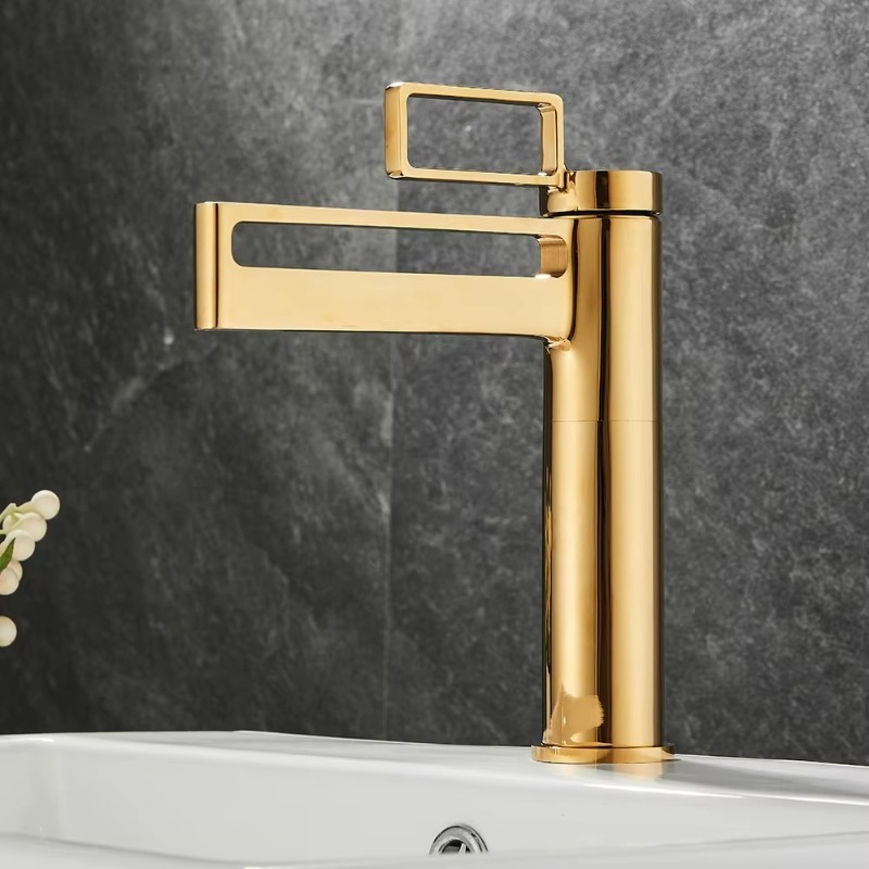 Premium Pure Brass Single Lever Basin Mixer Tap Gold Finish Hot And Cold Water Control Durable Bathroom Wash Basin Faucet Deck Mount Elegant Pillar Design
