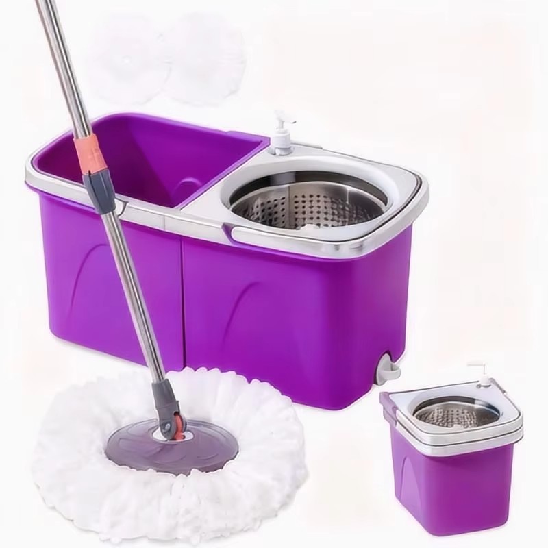 Premium Spin Mop Floor Cleaning System With Twin Bucket Stainless Steel Spinner Microfiber Mop Heads Adjustable Handle Durable Cleaning Set For Home Floors