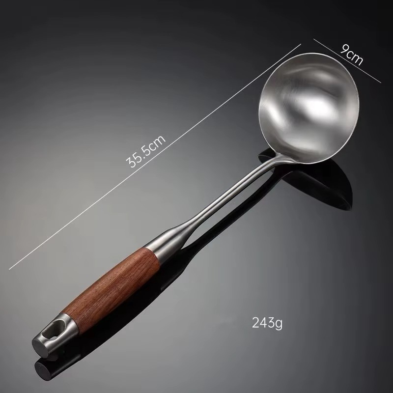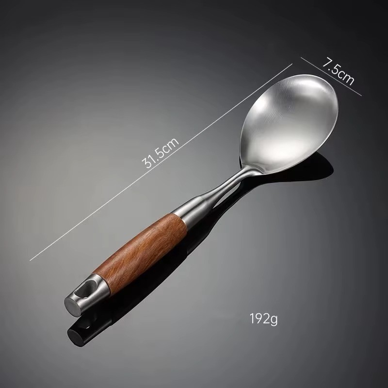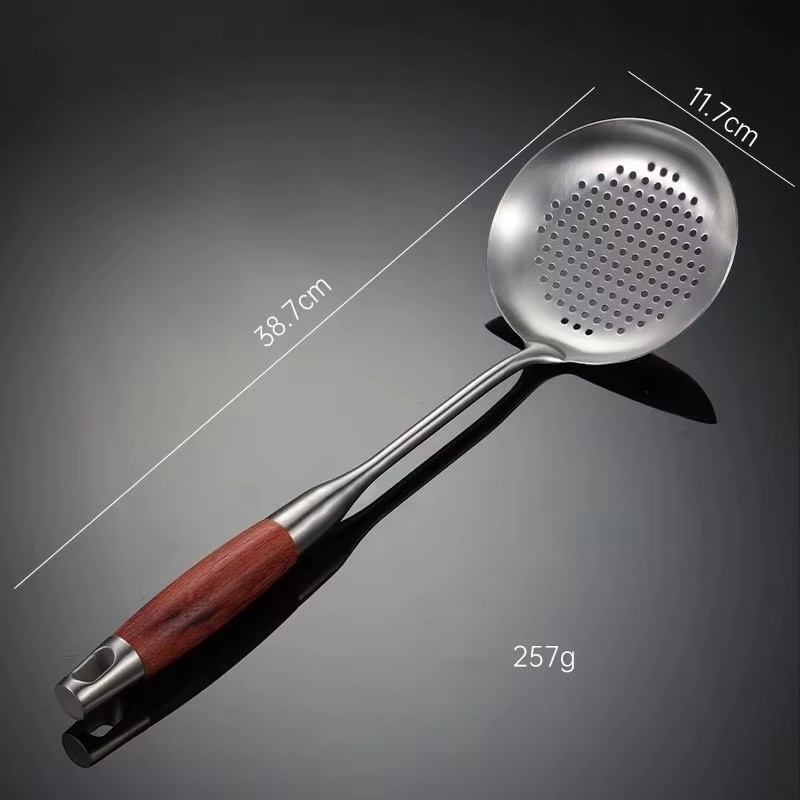 Premium Stainless Steel Slotted Spoon With Wooden Handle Heat Resistant Non Stick Safe Cooking Strainer Spoon Durable Kitchen Serving Frying Tool For Home Use