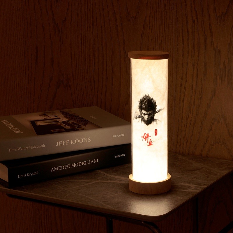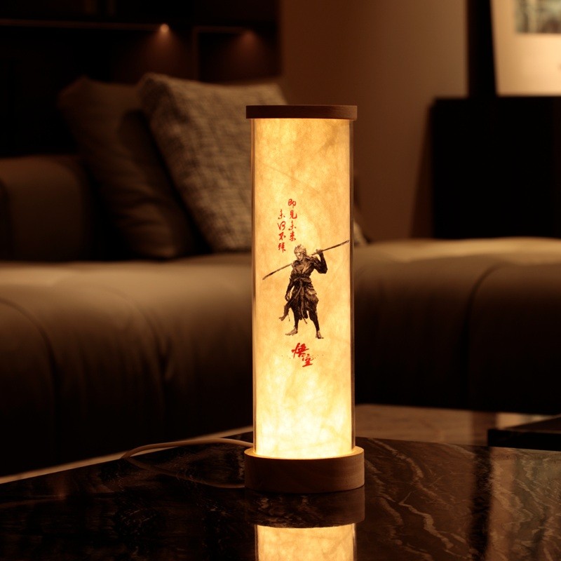 Anime Samurai LED Cylinder Lamp – Plug-in Night Light Wooden Base Decorative Table Lamp and collectible lamp
