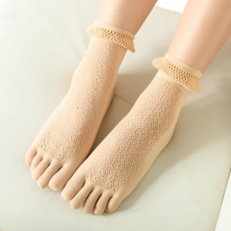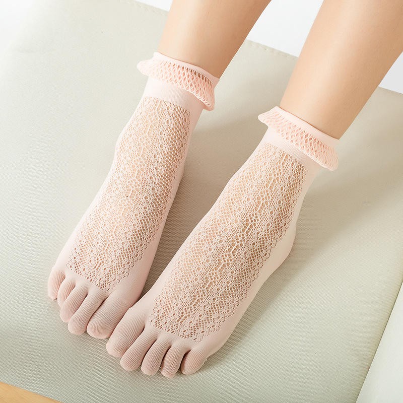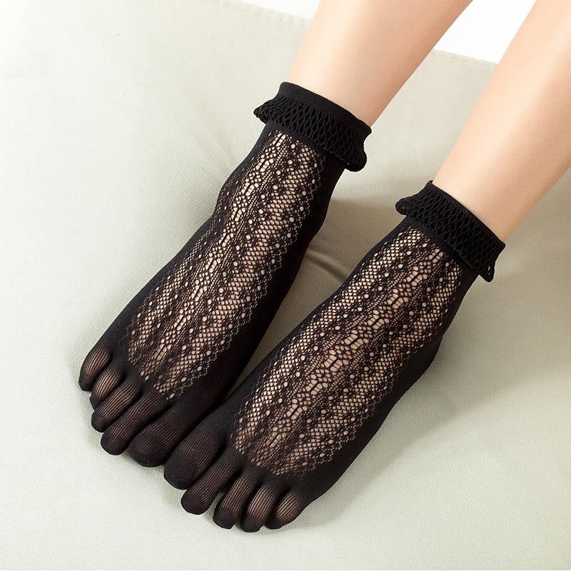 Hotsale Summer Japan Style Nylon Lace Invisible Five Toe Socks for Women Cute Transparent Silk Socks Sexy Breathable Low Cut Socks Pack of 5