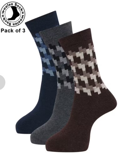 Men Pack of 3 Wool Above Ankle Length Socks Warm Soft Stretchable Comfortable Winter Wear Breathable Durable Daily Use Stylish Socks for Men-free size