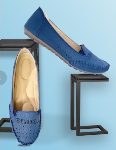 Women Slip On Ballerina Blue Leatherette Shoes Stylish Comfortable Lightweight Casual Daily Wear Soft Cushioned Elegant Ballet Flats Footwear for Women