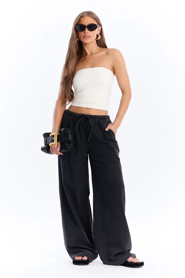 Light wash wide leg jeans pair well with fitted tops, crop tops, bodysuits, or tucked-in shirts to balance the volume of the pants and create a flattering silhouette.