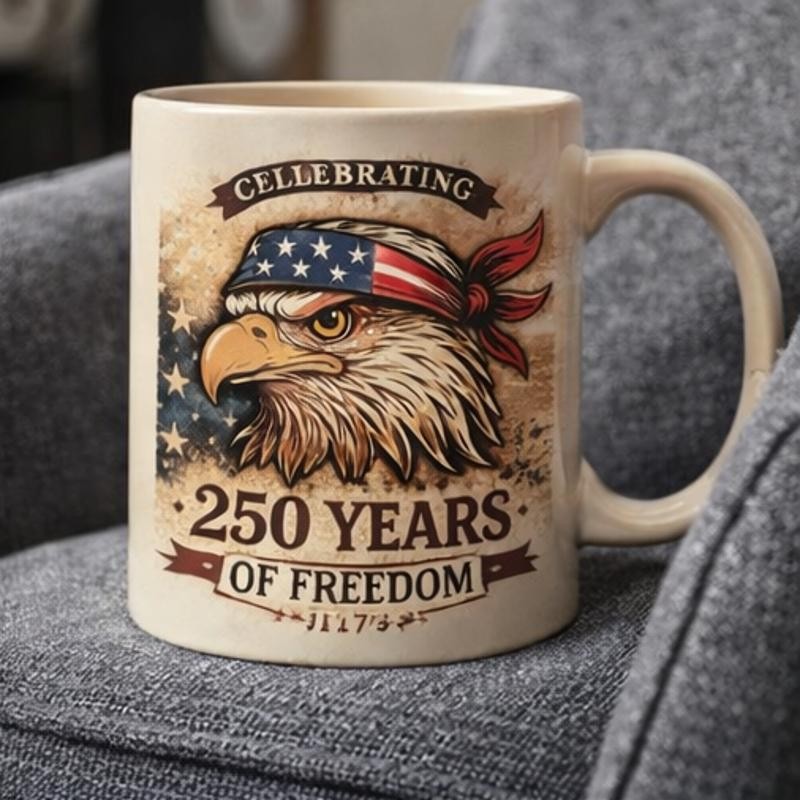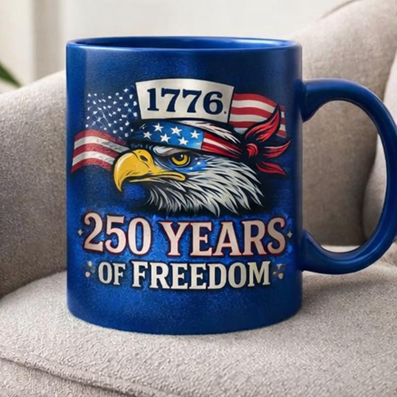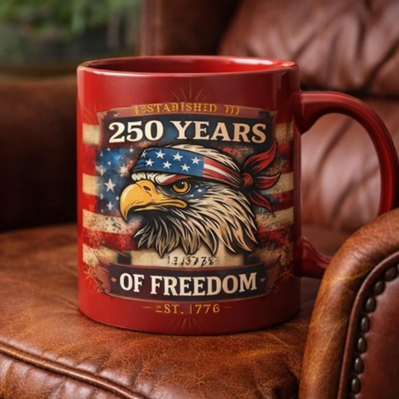 This mug celebrates the 250th anniversary of the United States (1776–2026) with a patriotic design, making it a meaningful keepsake.