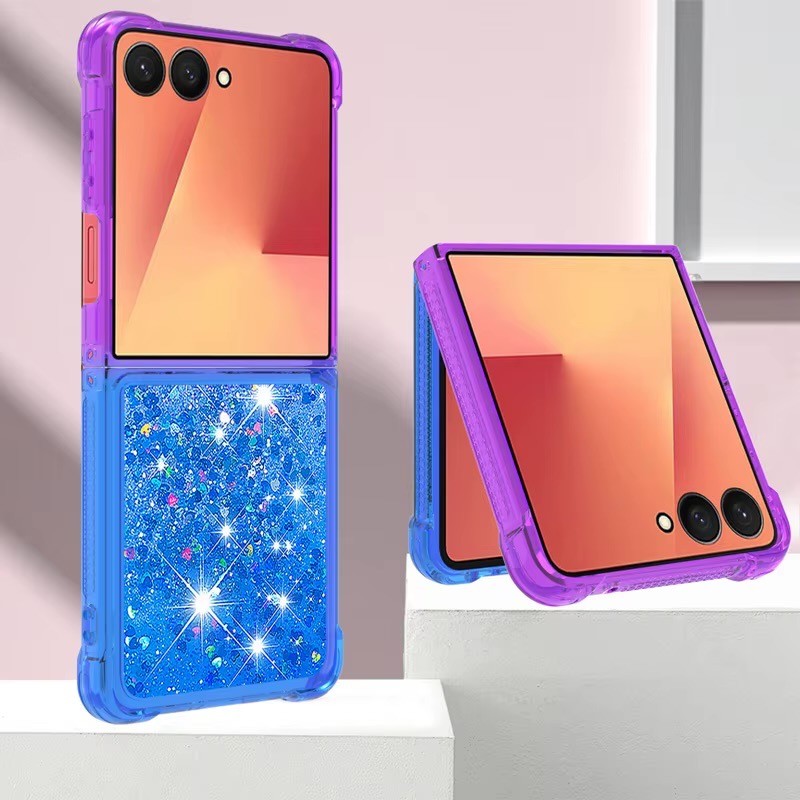 Shockproof Gradient Bling Quicksand Soft TPU Phone Case for Samsung Galaxy Z Flip 7 Premium Glitter Liquid Floating Back Cover Protective Case