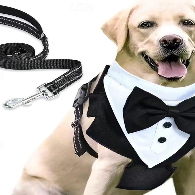 Dog Harness Leash Tuxedo Soft Comfortable Wedding Party Outfit Clothing for Small Medium Large Dogs