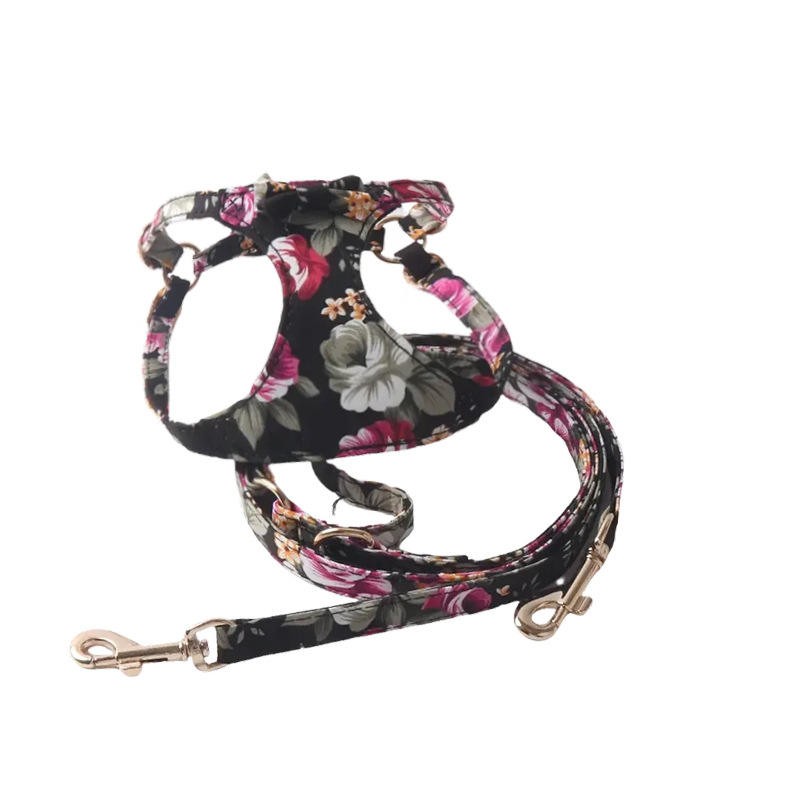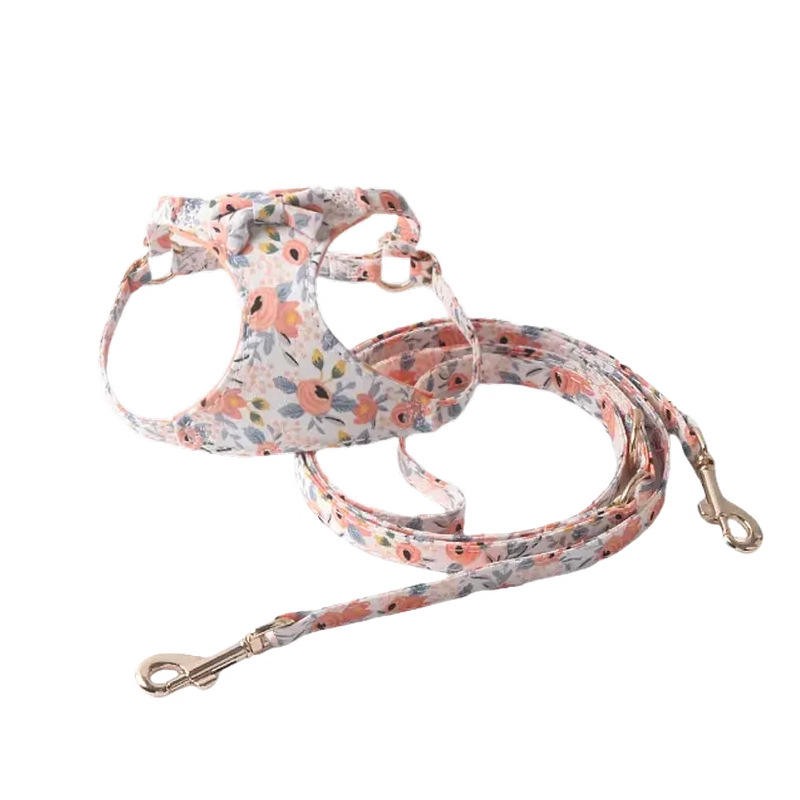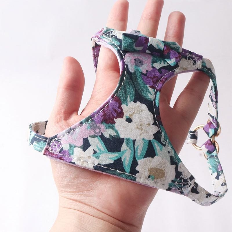 No Pull Floral Pattern Dog Harness - Lightweight and Soft Dog Harness Adjustable Small Dog Harness and Leash Set