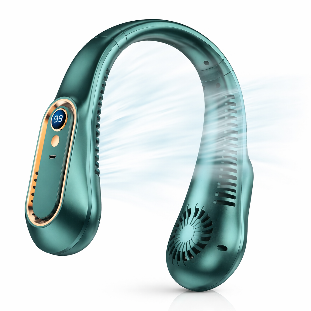 Digital Display Wearable Neck Fan 5 Speed Rechargeable USB Air Cooler Portable Hands Free Cooling Device for Outdoor Travel Office Use