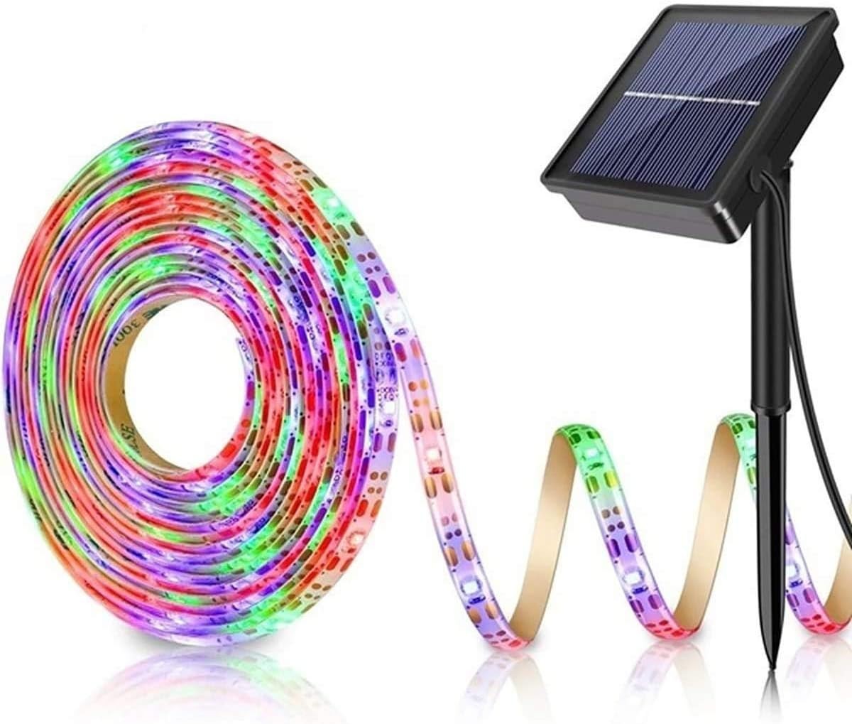 Outdoor Solar LED Strip Light 5M 150 LEDs Waterproof RGB Warm White Flexible Strip for Garden Balcony Stairs Pergola Decoration
