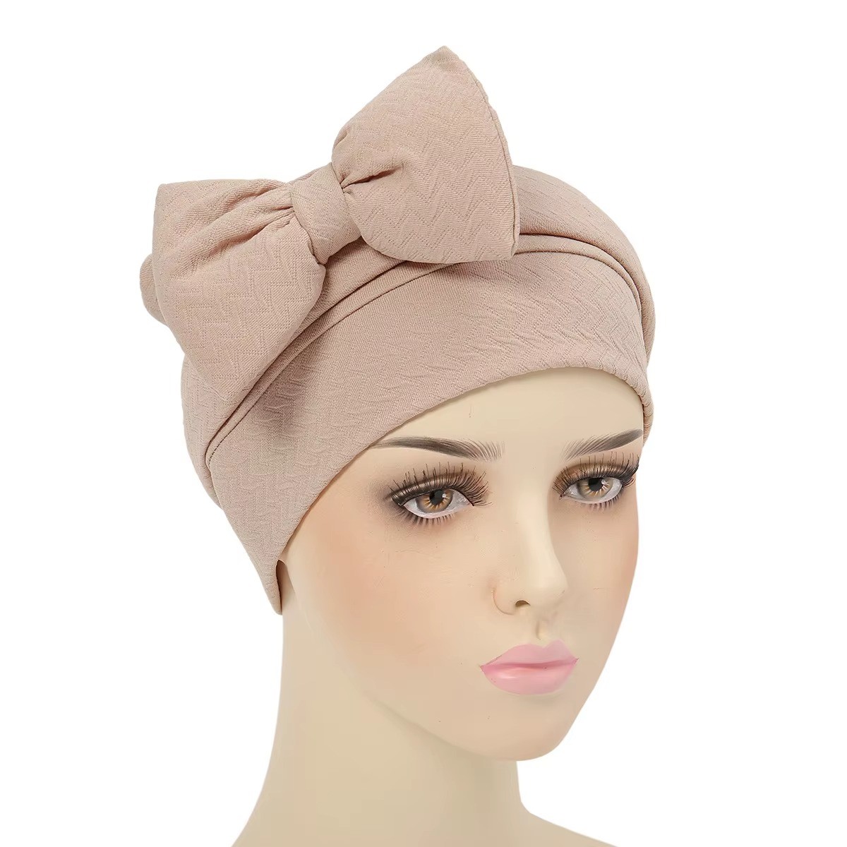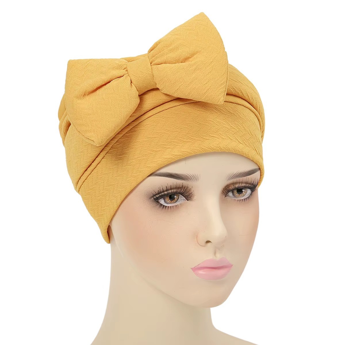 Polyester Cotton Blend Floppy Hat Casual Church Turban with Bowknot Pure Color Headpiece Stylish Women's Fashion Headwear