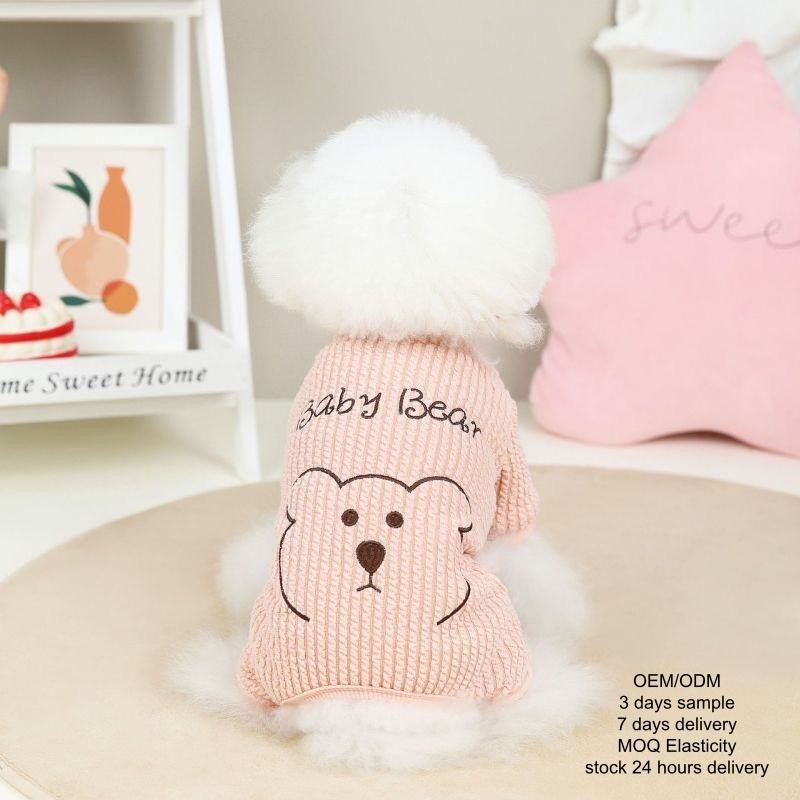 Bear Print Dog Winter Coat for Small Dogs & Puppies – Warm Cotton Pet Jacket, Cute Stylish Casual Outdoor Daily Wear in Yellow, Pink & Blue Dog Outfit (Pack of 1)