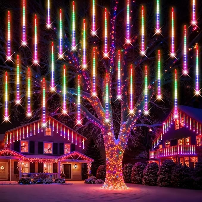 Meteor Shower LED String Lights 30CM 16 Tubes 384 LED Plug In Outdoor Indoor Decoration Lights for Garden Balcony Wedding Festival Decor