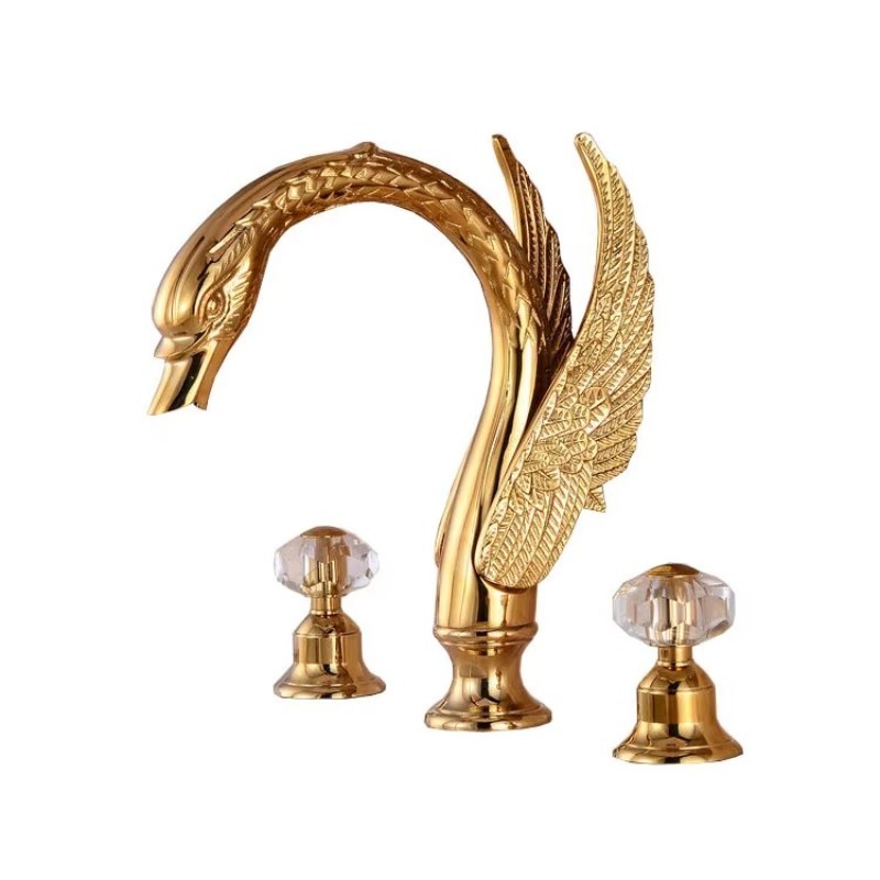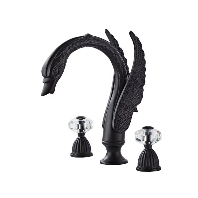 Vintage Swan Shape Widespread Bathroom Sink Mixer Faucet Brass 3 Hole 2 Handle Deck Mounted Basin Tap Elegant Washroom Vessel Tap with Hot and Cold Hose